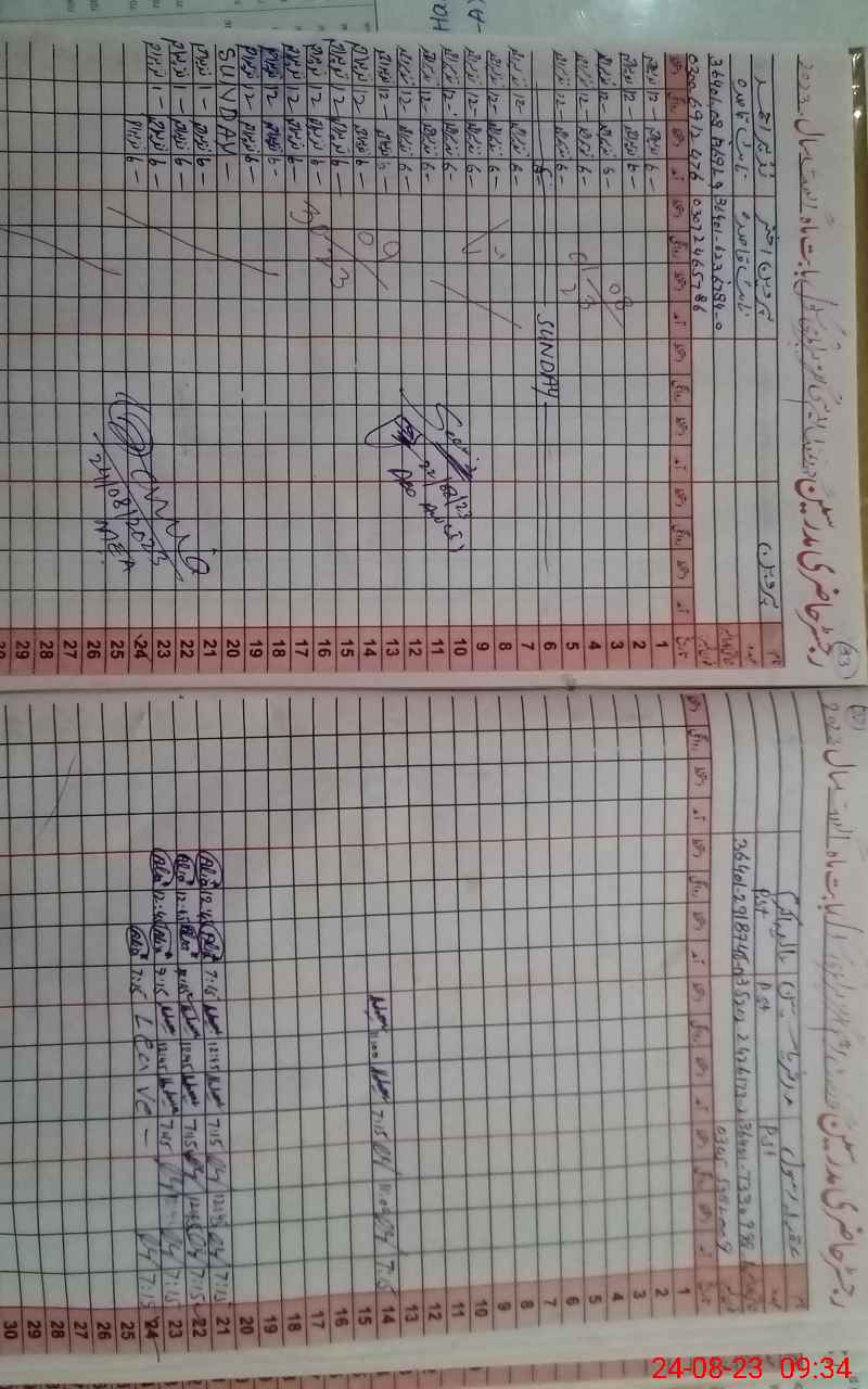 | CNIC | Full Name | Designation | R/C | Absence During Last Calender Month |