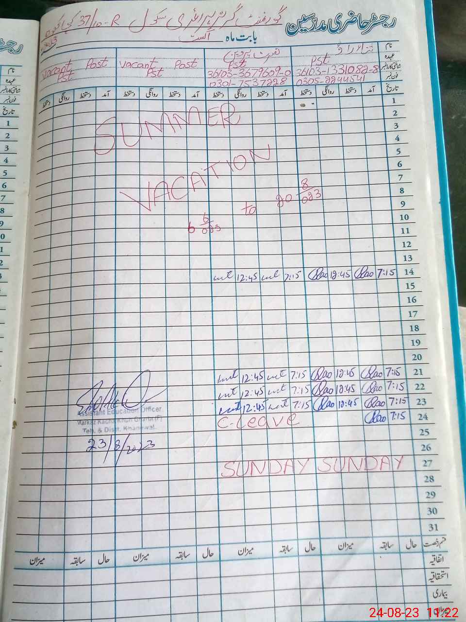 | Name: Sa**** Ra**** Designation: (School Headmaster's/Headmistress's) PST Phone/Cell Number: 03**** |