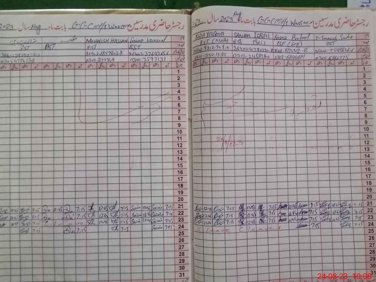 | Name: Mu**** Sa**** Designation: (School Headmaster's/Headmistress's) SST (English) Phone/Cell Number: 03**** |