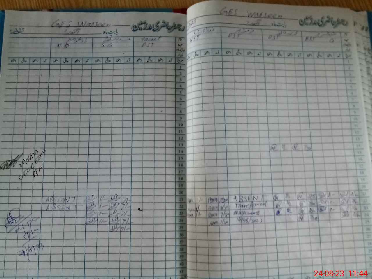 | CNIC | Full Name | Designation | R/C | Absence During Last Calender Month |