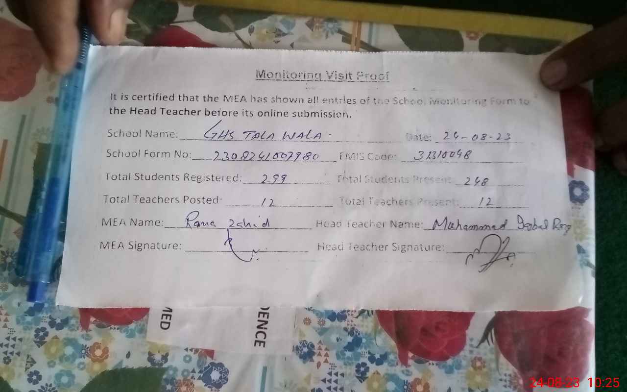 | EMIS Code: 31310048 | Name of School: GHS TALA WALA | |||