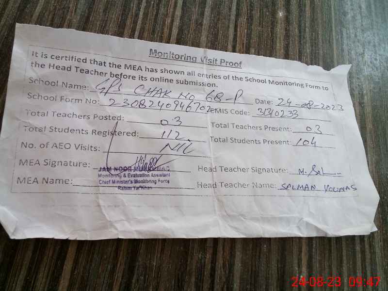 | EMIS Code: 31310233 | Name of School: GPS CHAK NO 68 P | |||