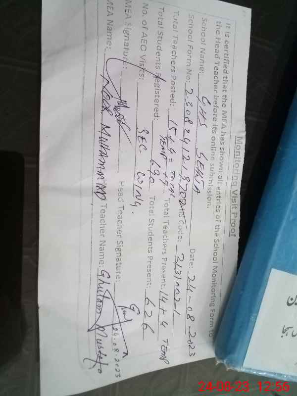 | Certified that this School was Inspected by the Undersigned MEA/DMO Today and the Information Stated Above is as Per Record. | |||||