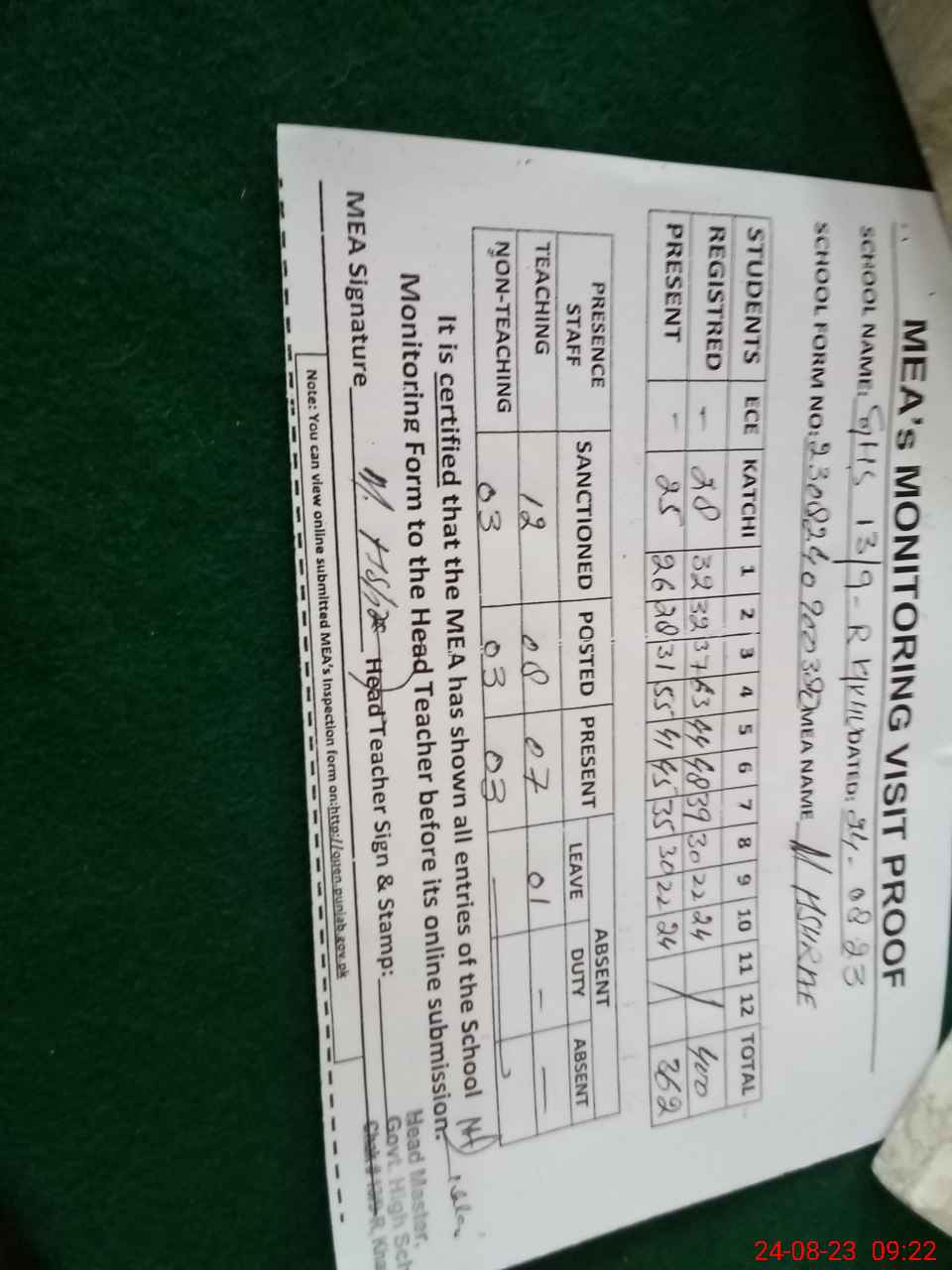 | EMIS Code: 36420074 | Name of School: GHS 13/9-R, KACHA KHUH | |||