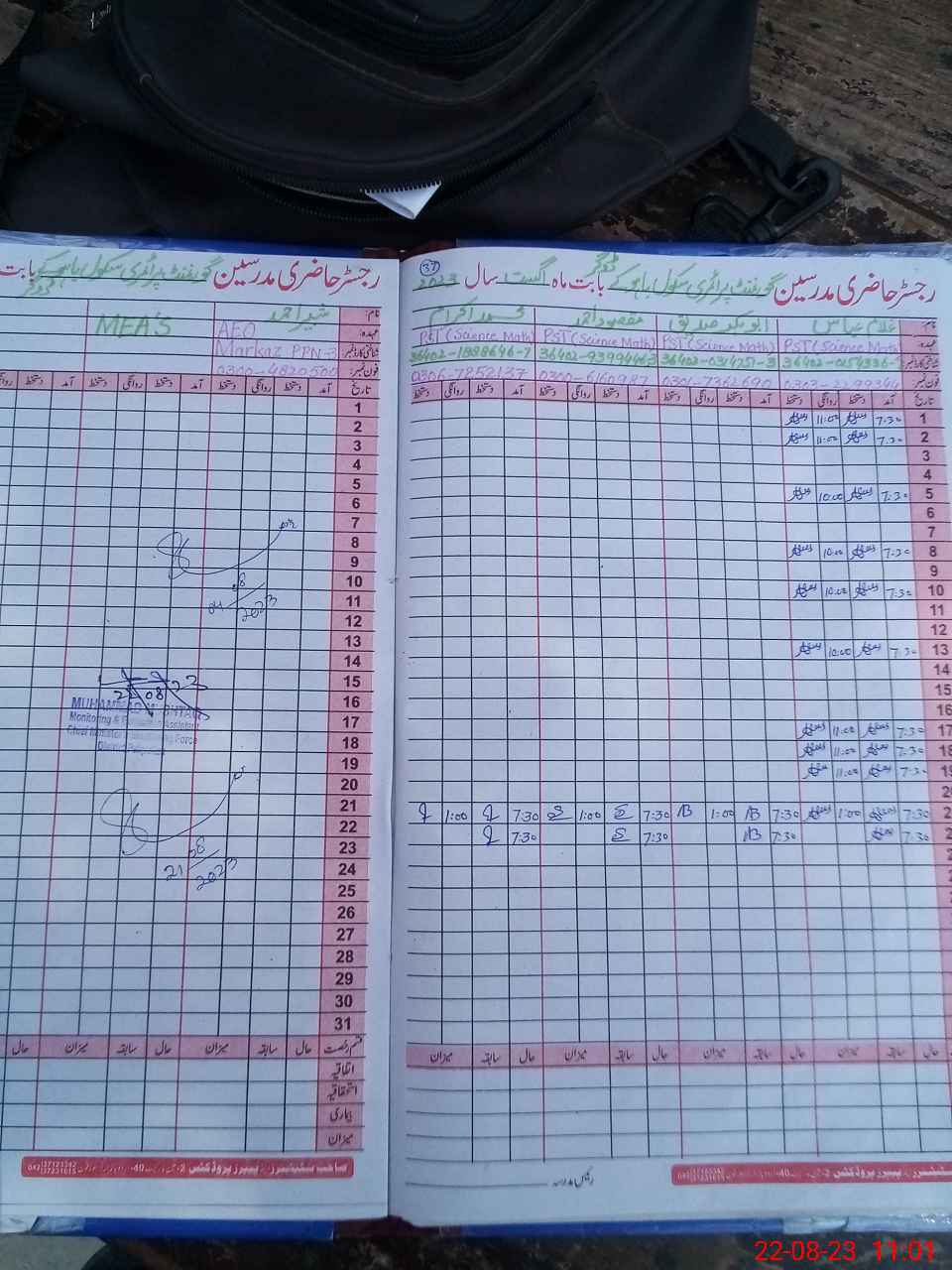| Name: Ab**** Si**** Designation: (School Headmaster's/Headmistress's) PST Phone/Cell Number: 03**** |