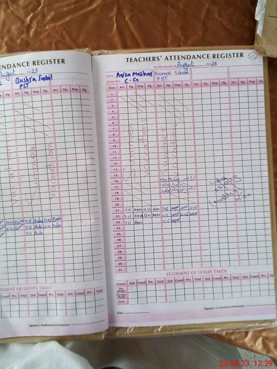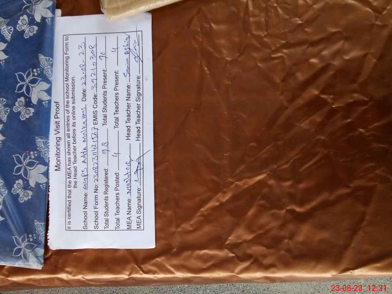| Attendance Register | Head Teacher | MEA with School | Visit Proof |