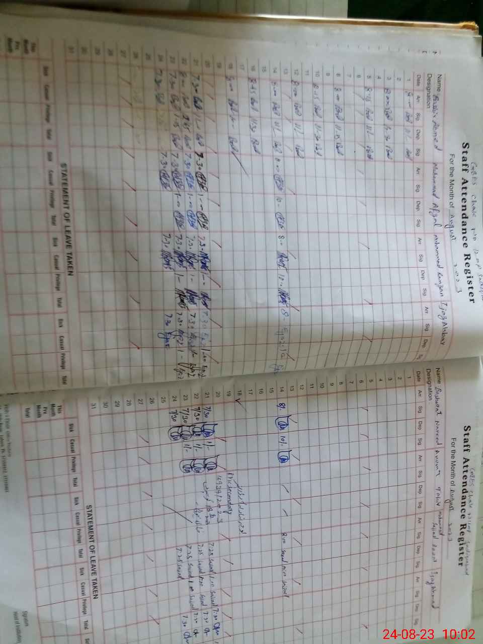| CNIC | Full Name | Designation | R/C | Absence During Last Calender Month |