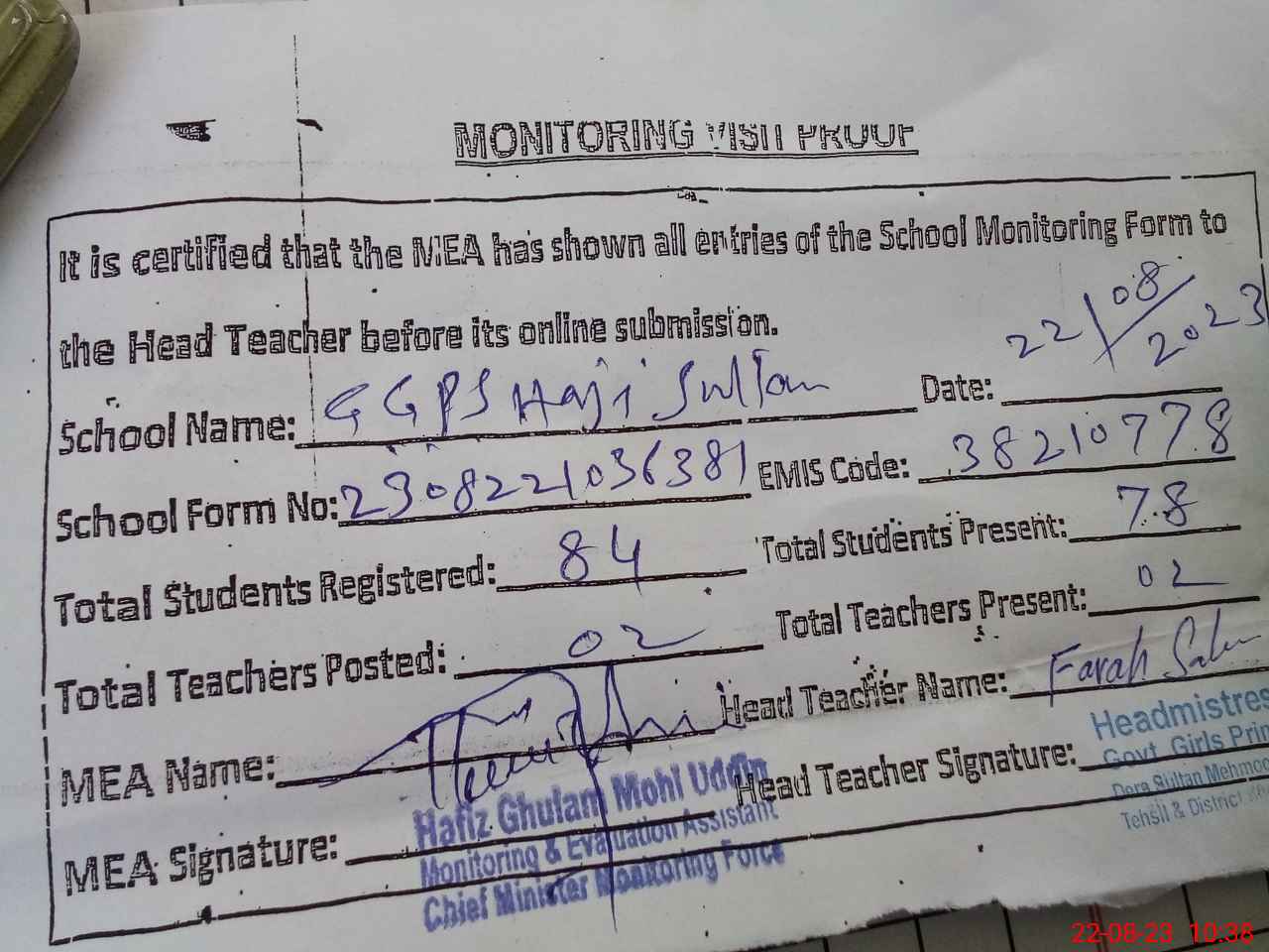 | EMIS Code: 38210778 | Name of School: GGPS HAJI SULTAN MEHMOOD PALUWAN | |||