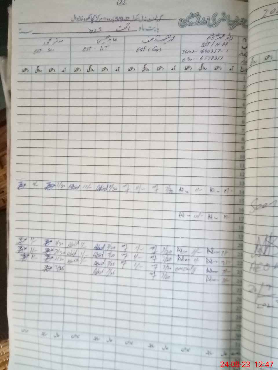 | CNIC | Full Name | Designation | R/C | Absence During Last Calender Month |
