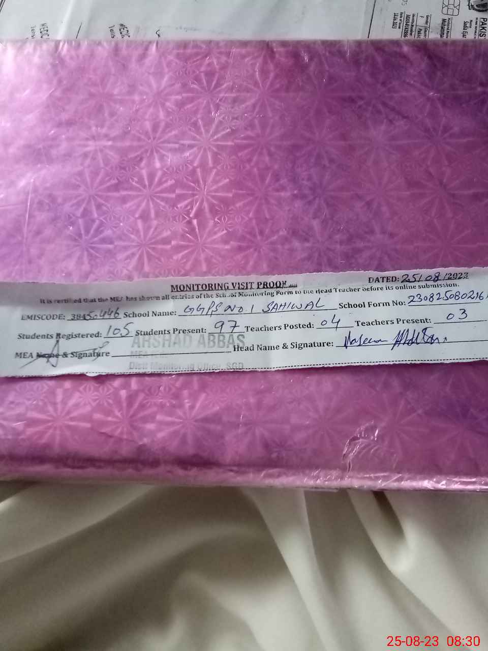 | EMIS Code: 38450446 | Name of School: GGPS NO.1 SAHIWAL | |||