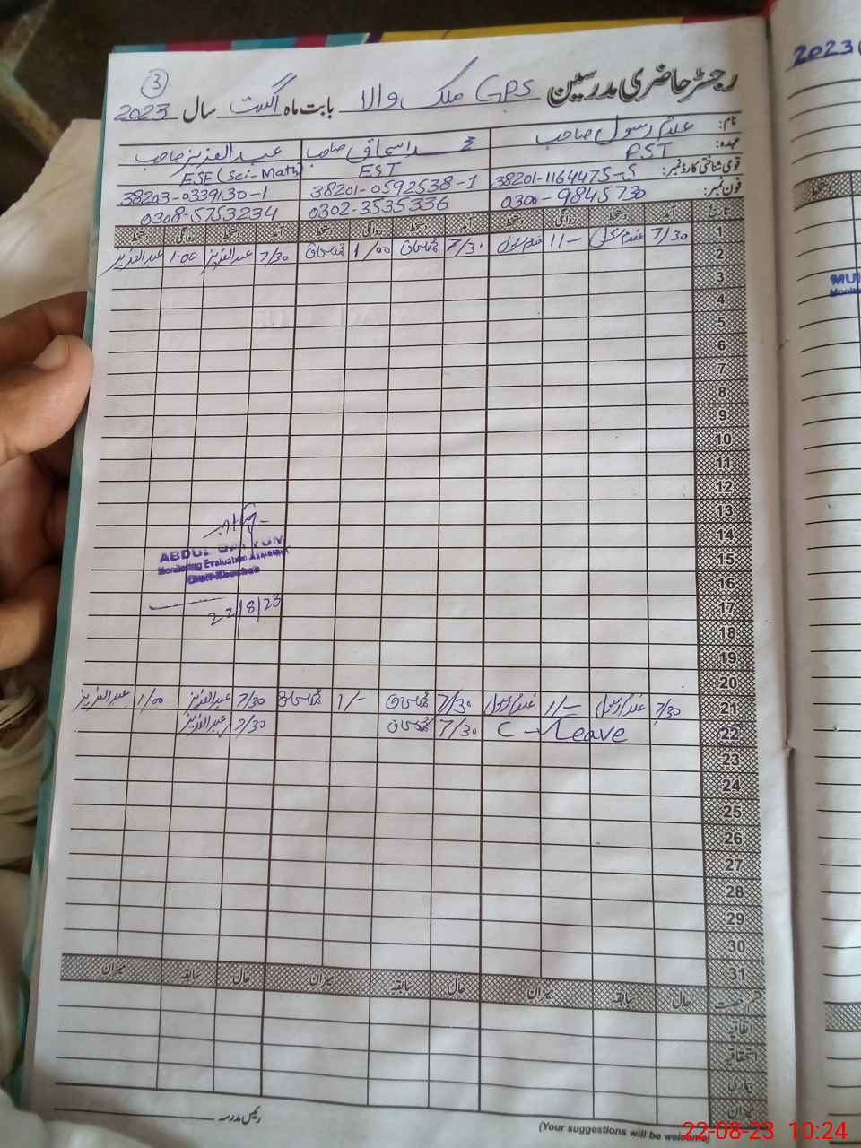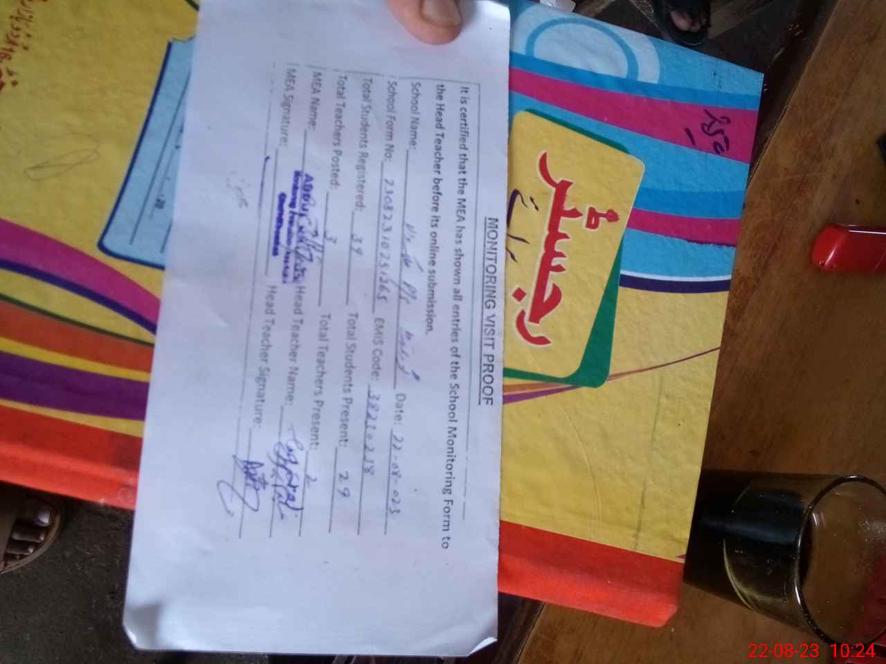 | EMIS Code: 38230238 | Name of School: GPS MALIK WALA | |||