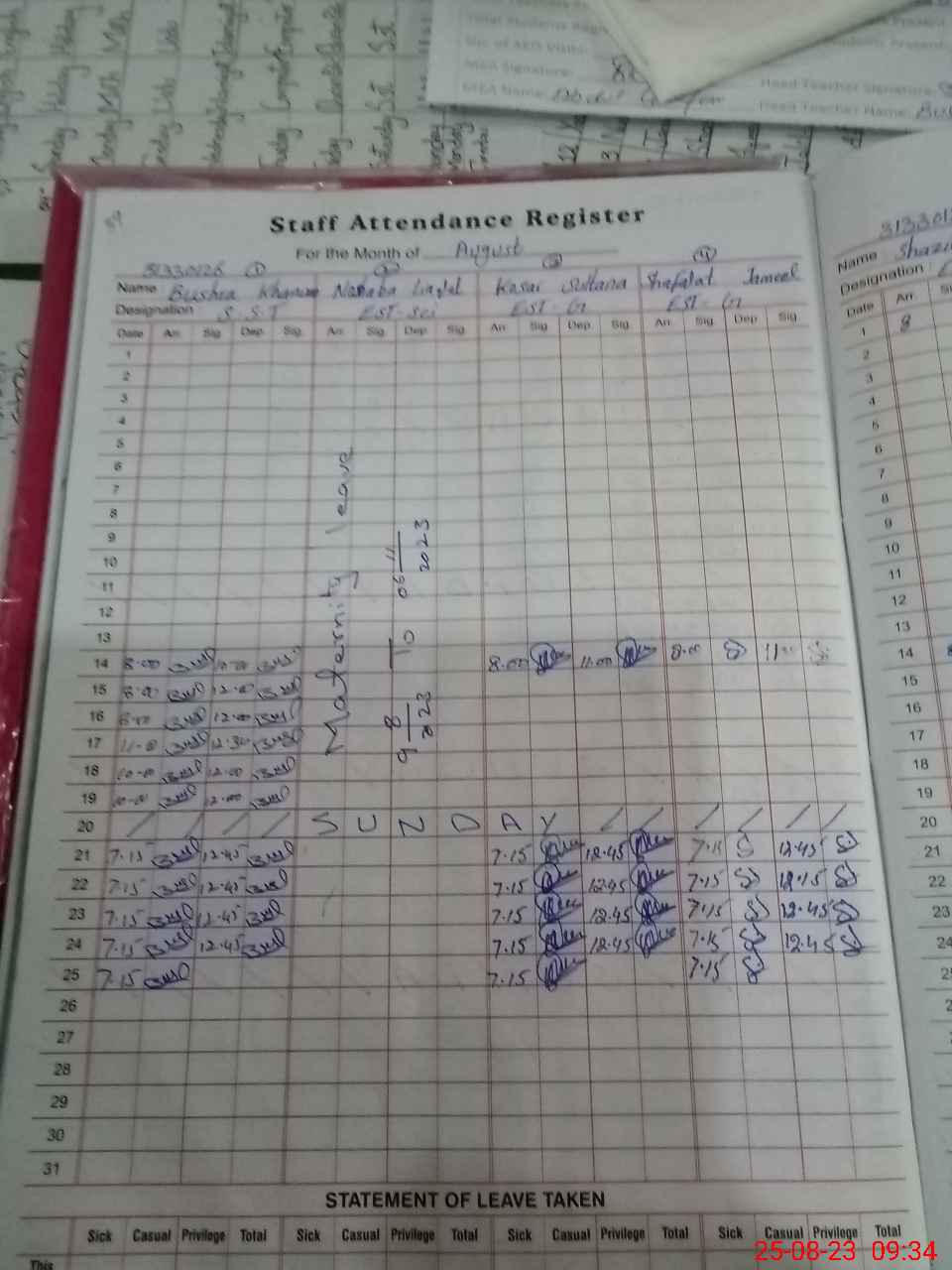 | 31**** | Mu**** Al**** | CHOKIDAR | Regular | 0 | 0 | 30 | 0 | 0 | 0 | 0 | 0 | 0 | Absent (Un-Authorized) |