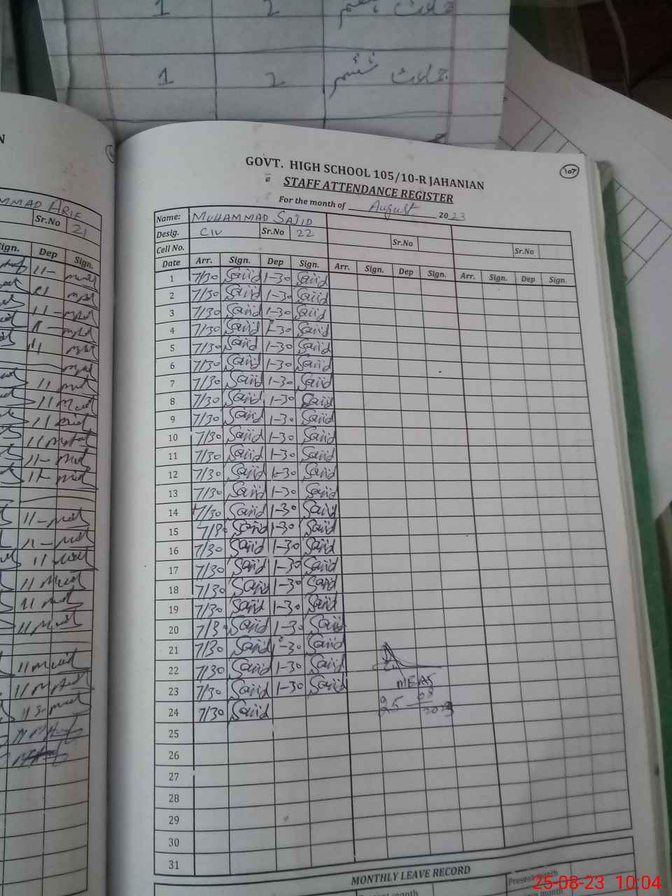 | Monitoring Date: 25-08-2023 | Start Time: 25-08-2023 09:21 AM | End Time: 25-08-2023 10:05 AM | Name of MEA: Ab**** Ja**** (S**** 20**** | |