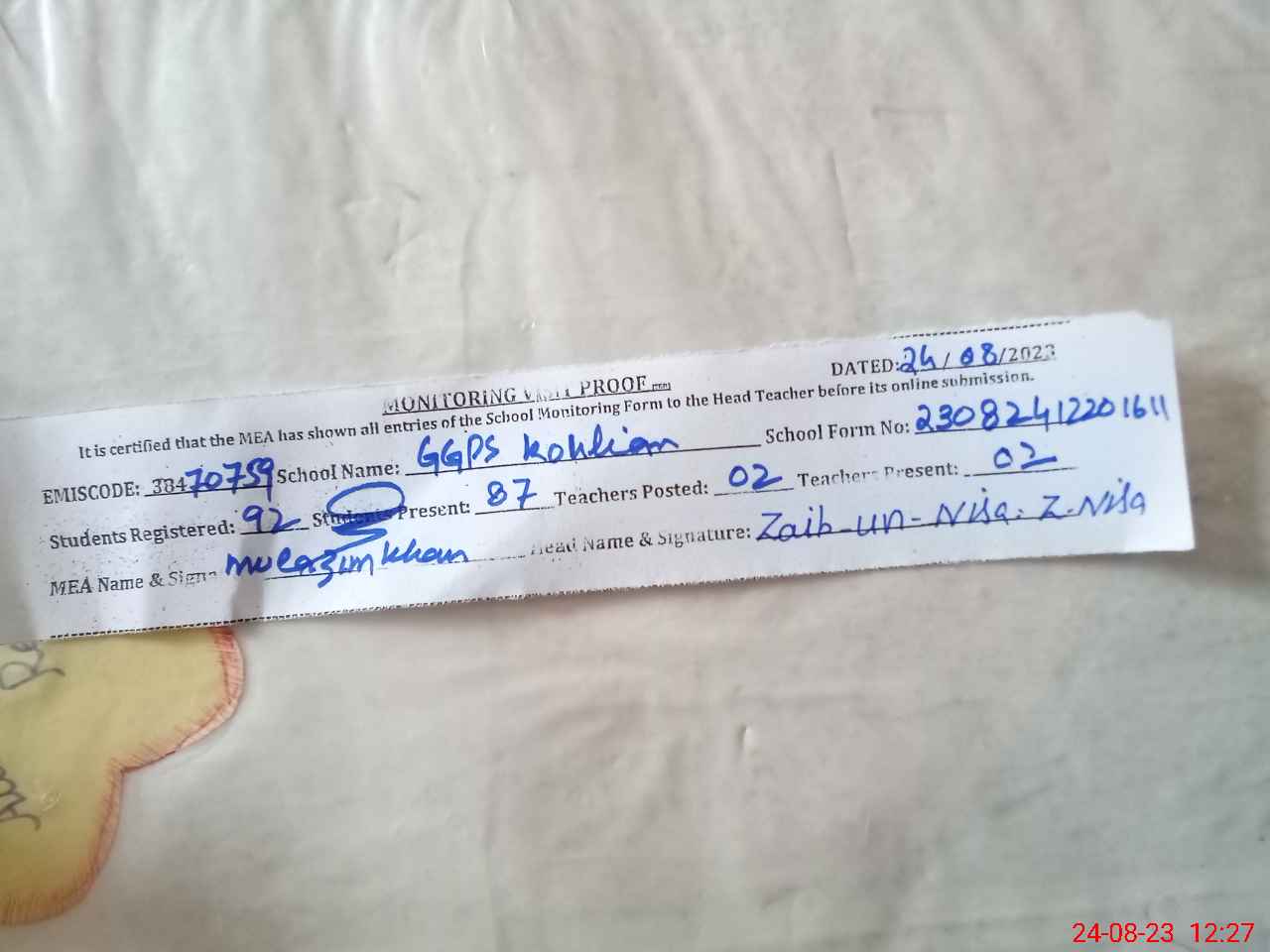 | EMIS Code: 38470759 | Name of School: GGPS KOHLIAN | |||