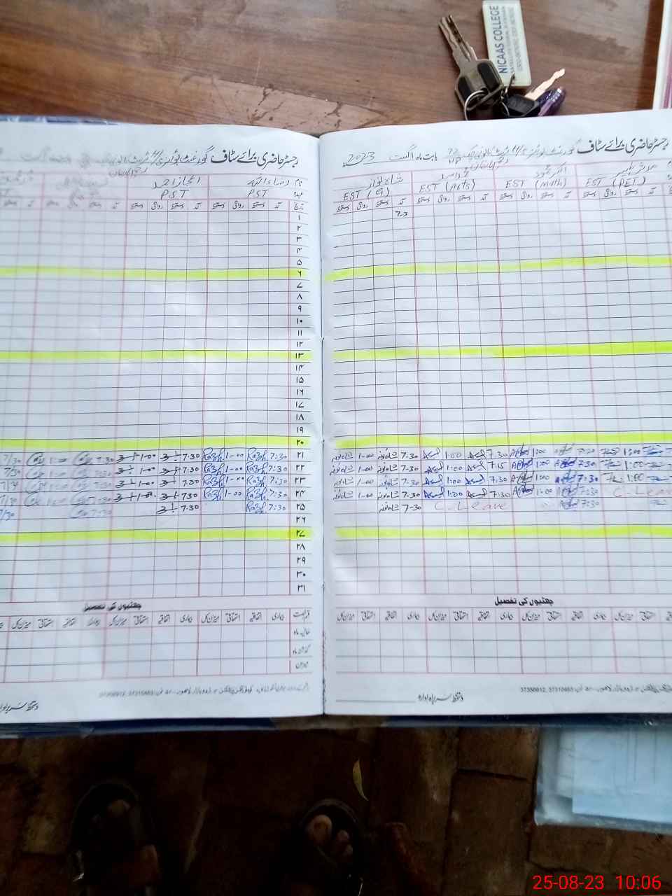 | CNIC | Full Name | Designation | R/C | Absence During Last Calender Month |