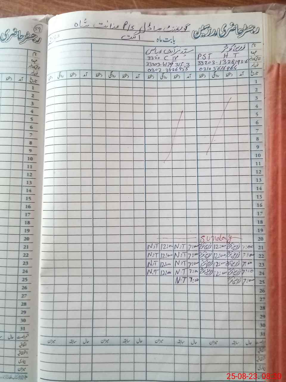 | CNIC | Full Name | Designation | R/C | Absence During Last Calender Month |