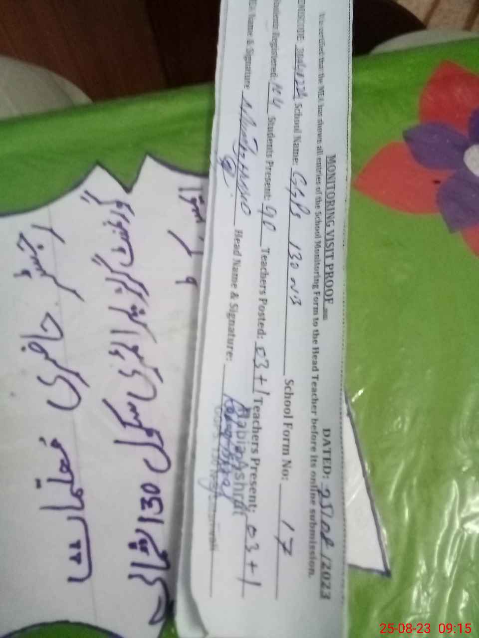 | Attendance Register | Head Teacher | MEA with School | Visit Proof |