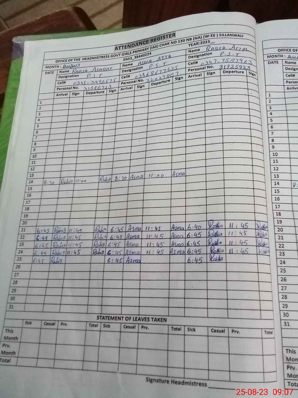 | Name: Re**** Ba**** Designation: (School Headmaster's/Headmistress's) PST Phone/Cell Number: 03**** |