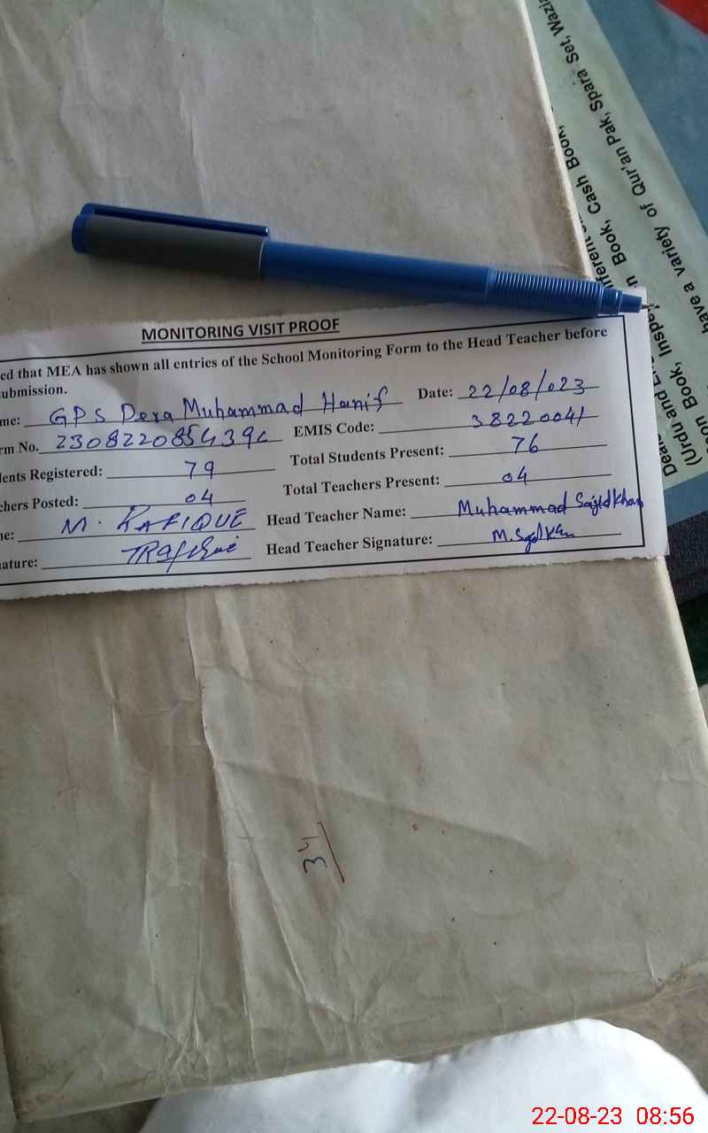 | EMIS Code: 38220041 | Name of School: GPS DERA MUHAMMAD HANIF | |||