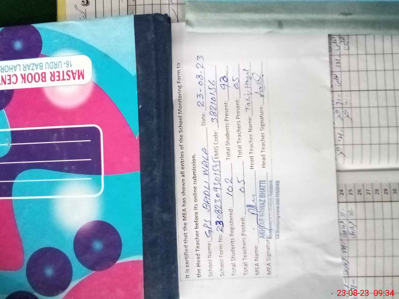 | Attendance Register | Head Teacher | MEA with School | Visit Proof |