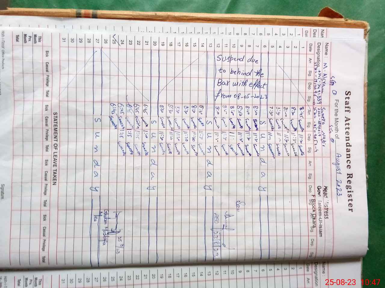 | 35**** | Mu**** Ak**** | SCHOOL GAUARD | Regular | 0 | 0 | 0 | 0 | 0 | 0 | 0 | 0 | 0 | Absent (Un-Authorized) |