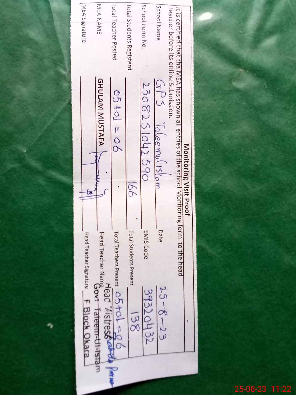 | EMIS Code: 39320432 | Name of School: GPS TALEEM-UL-ISLAM | |||