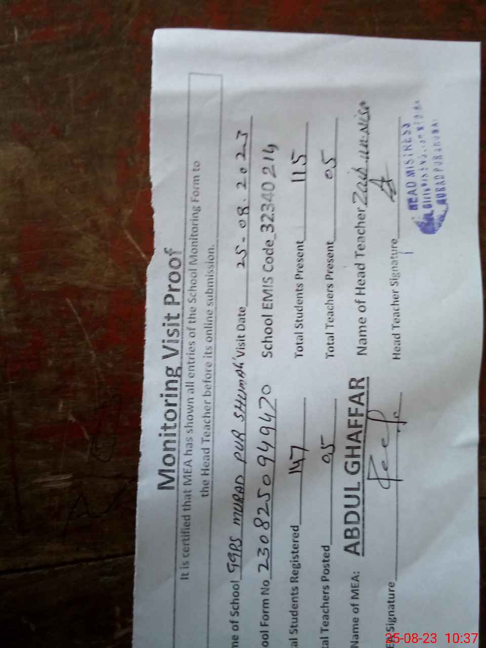 | EMIS Code: 32340214 | Name of School: GGPS MURAD PUR SHUMALI | |||