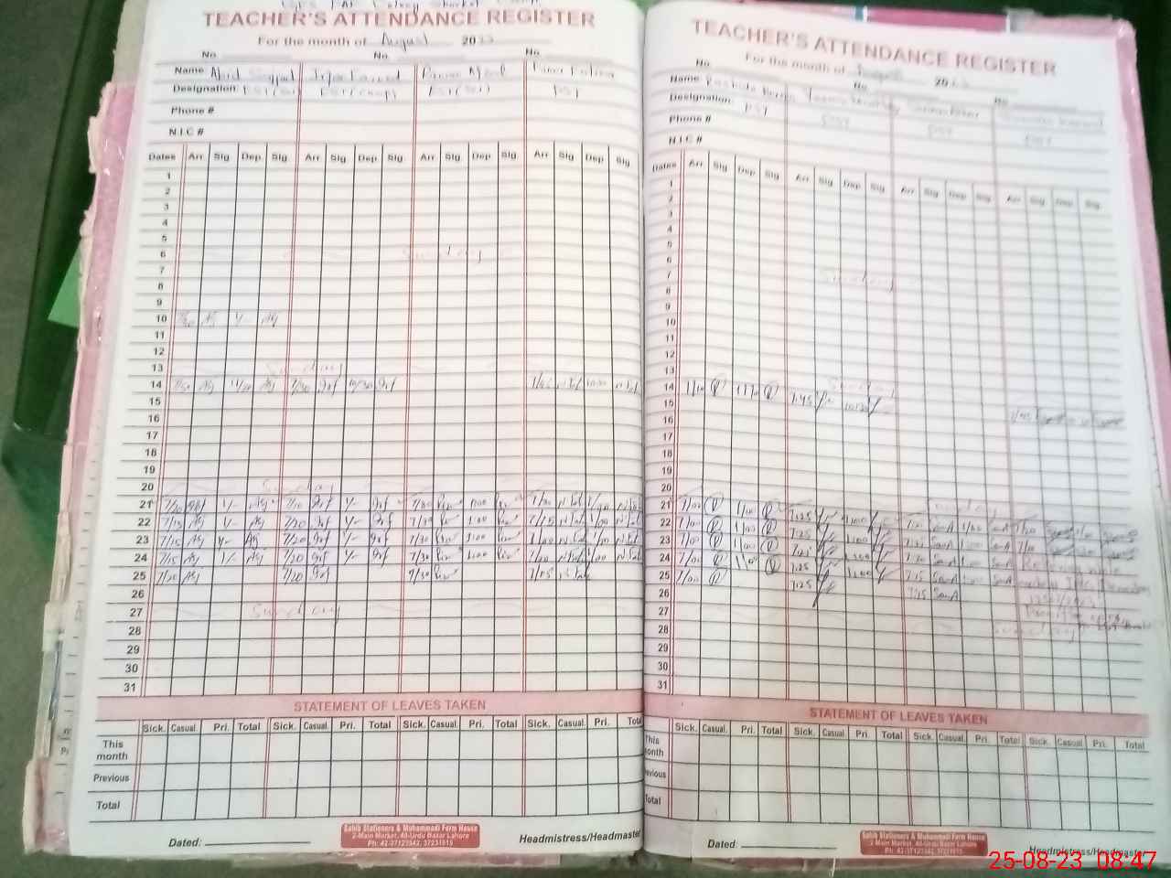 | Remarks (Use Separate Page if Required): PST Saima Akbar and EST Masood Ahmad not included in teaching staff of this school Both teachers are posted in this school and present today | |||||