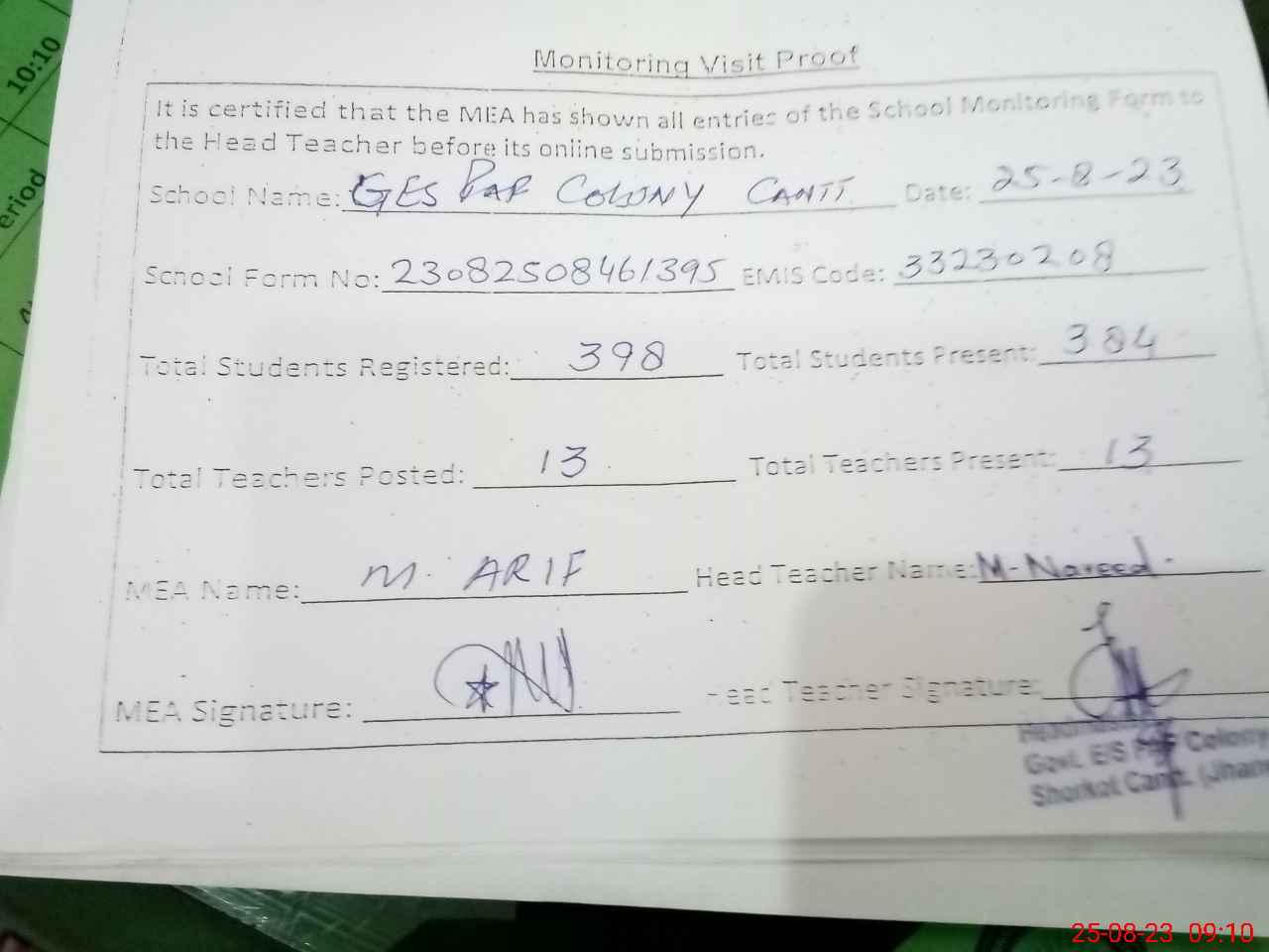| EMIS Code: 33230208 | Name of School: GES PAF COLONY SHORKOT | |||