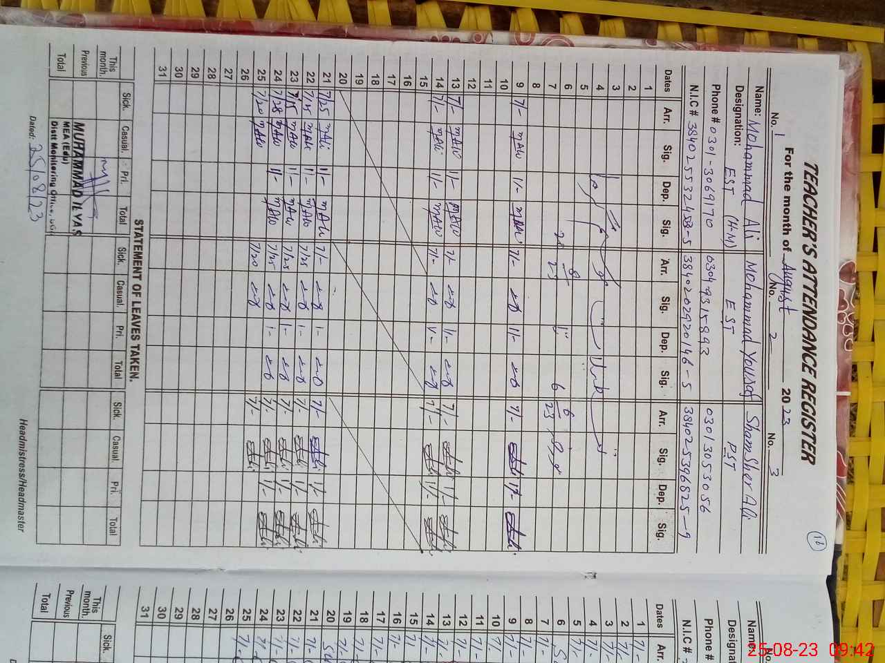 | Name: MU**** AL**** Designation: (School Headmaster's/Headmistress's) EST (GENRAL) Phone/Cell Number: 03**** |