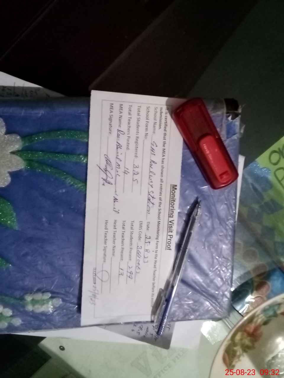 | Attendance Register | Head Teacher | MEA with School | Visit Proof |