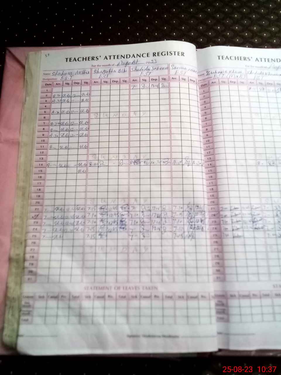 | Leave | Duty | Absent | Maternity | Medical | Ex- Pak |