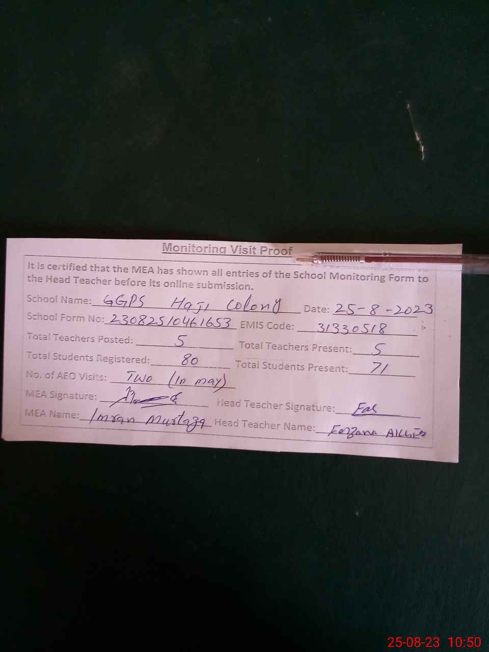 | EMIS Code: 31330518 | Name of School: GGPS HAJI COLONY | |||