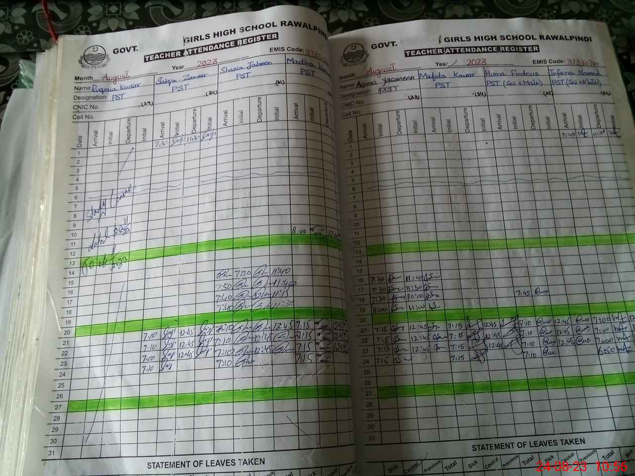 | Remarks (Use Separate Page if Required): Teachers Sofia Bibi PET Shazia Babar ESTSci Huma Firdous PST posted in and present in school while their names are not updated in PMIU app NSB record not updated in PMIU app Students of class 7 listed in PMIU app are not updated maximum students are in class 9 | |||||