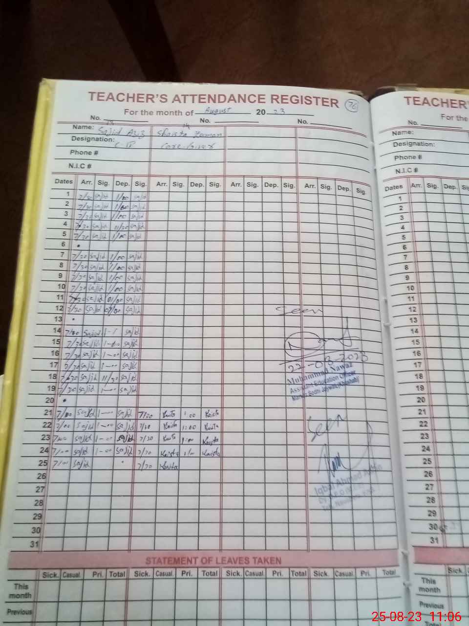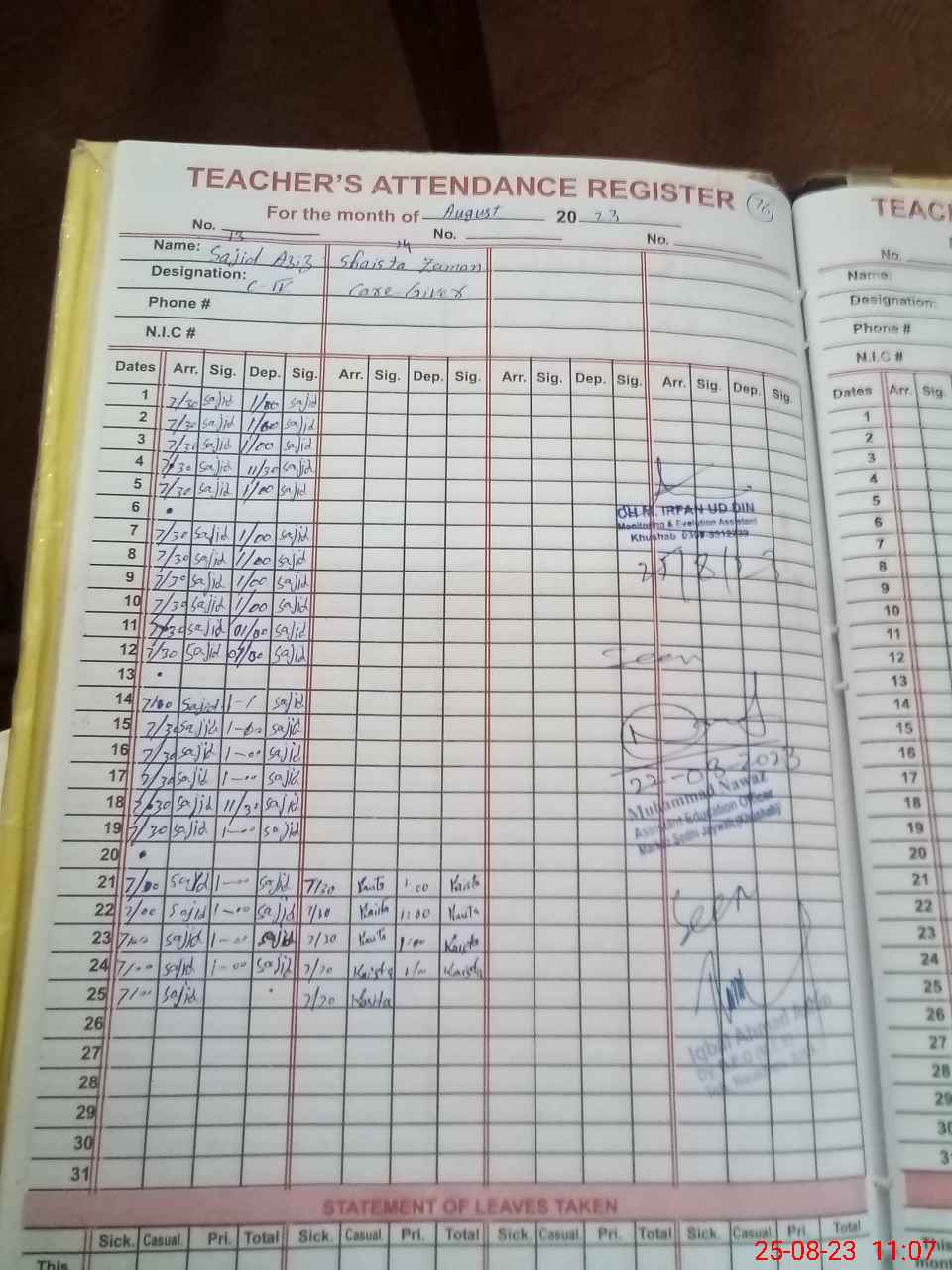 | Name: Ab**** Re**** Designation: (School Headmaster's/Headmistress's) Est Phone/Cell Number: 03**** |