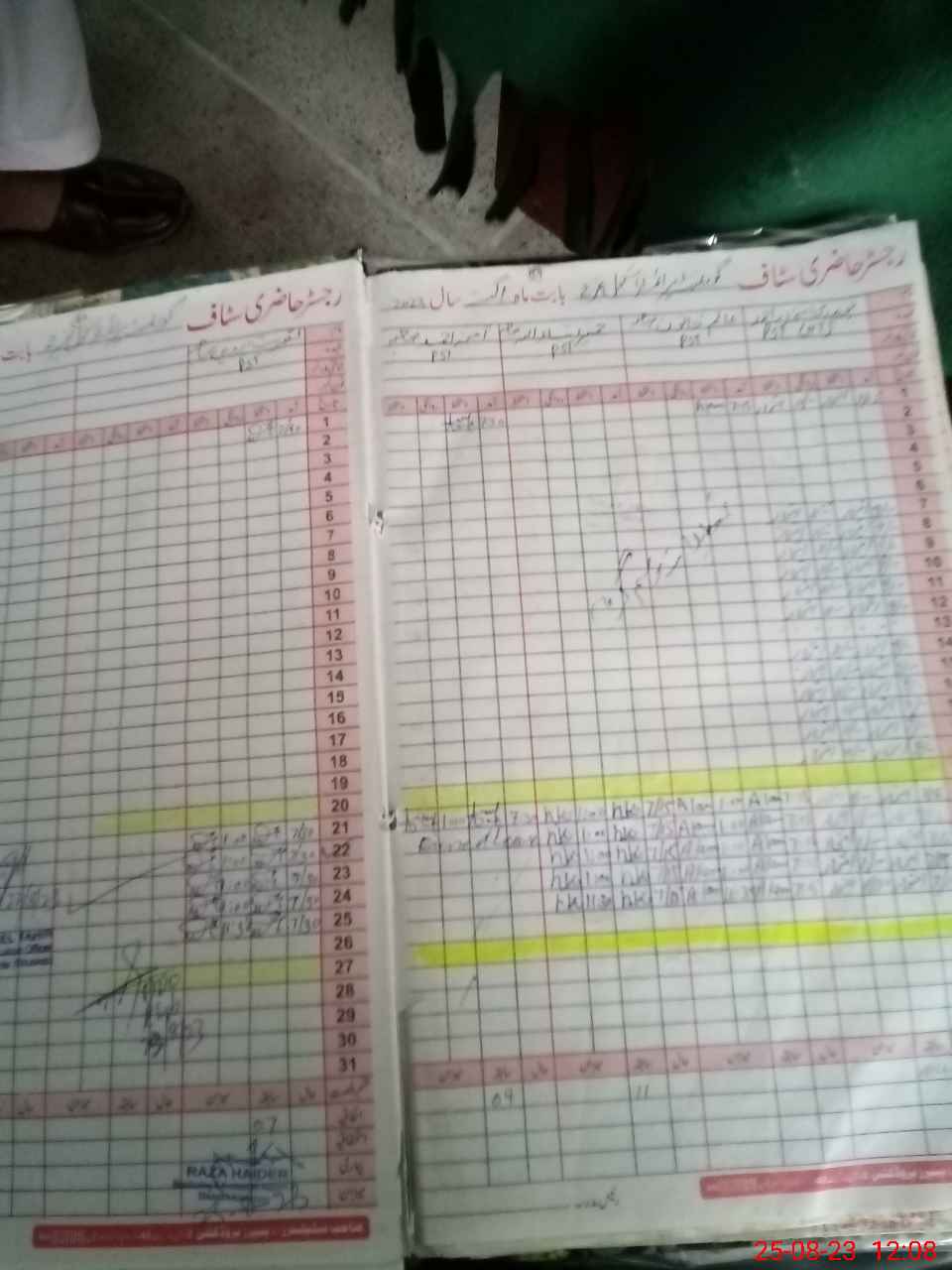 | CNIC | Full Name | Designation | R/C | Absence during last cal. month |