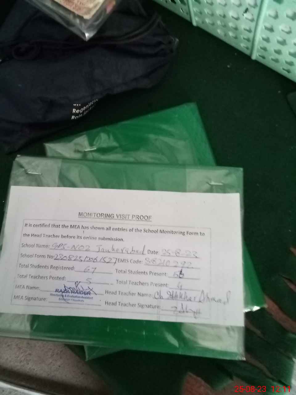 | Attendance Register | Head Teacher | MEA with School | Visit Proof |