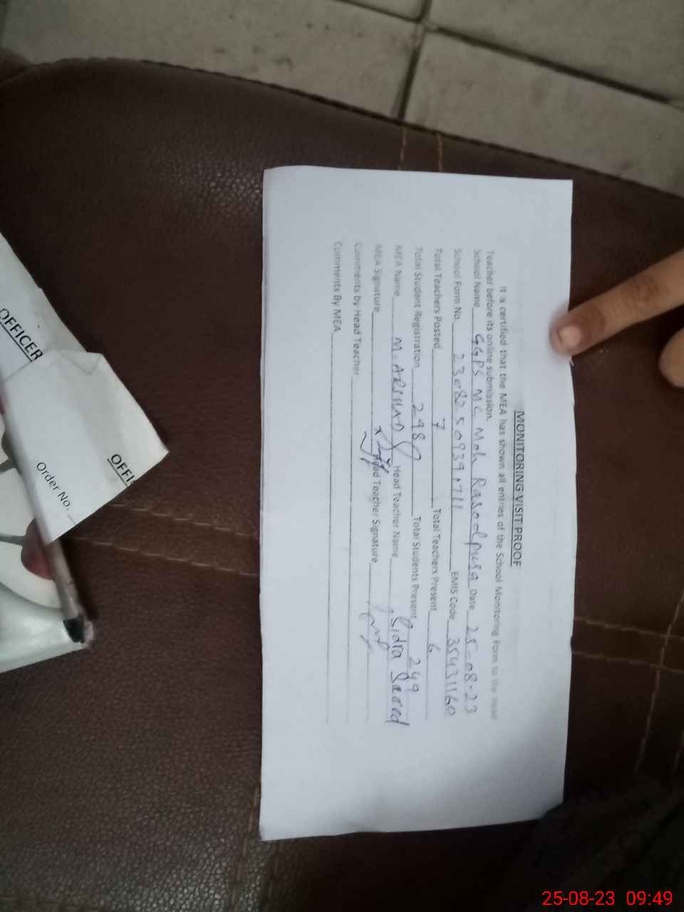 | Attendance Register | Head Teacher | MEA with School | Visit Proof |