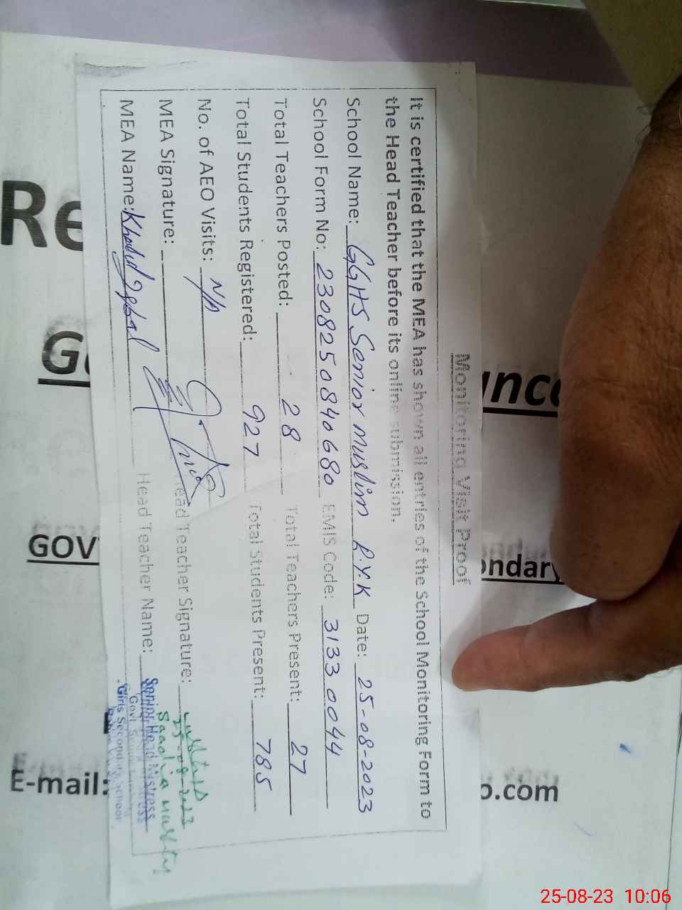 | EMIS Code: 31330044 | Name of School: GGHS SENIOR MUSLIM | |||