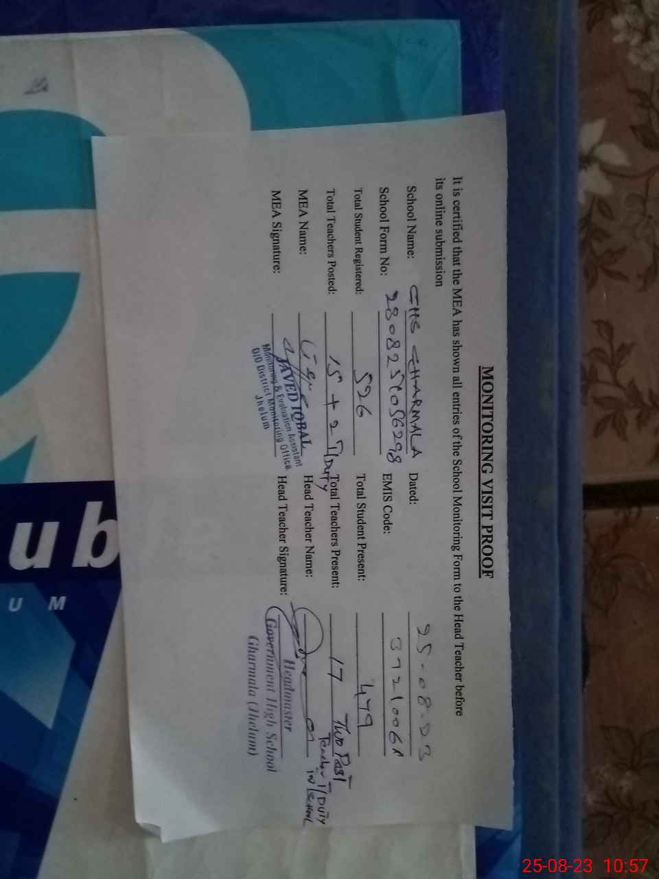 | EMIS Code: 37210061 | Name of School: GHS GHARMALA | |||