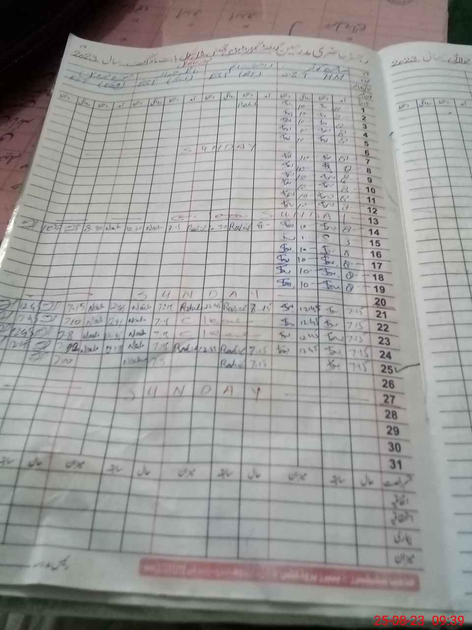 | CNIC | Full Name | Designation | R/C | Absence During Last Calender Month |