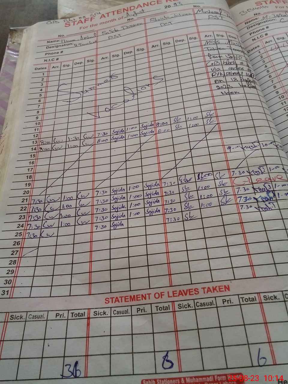 | CNIC | Full Name | Designation | R/C | Absence During Last Calender Month |