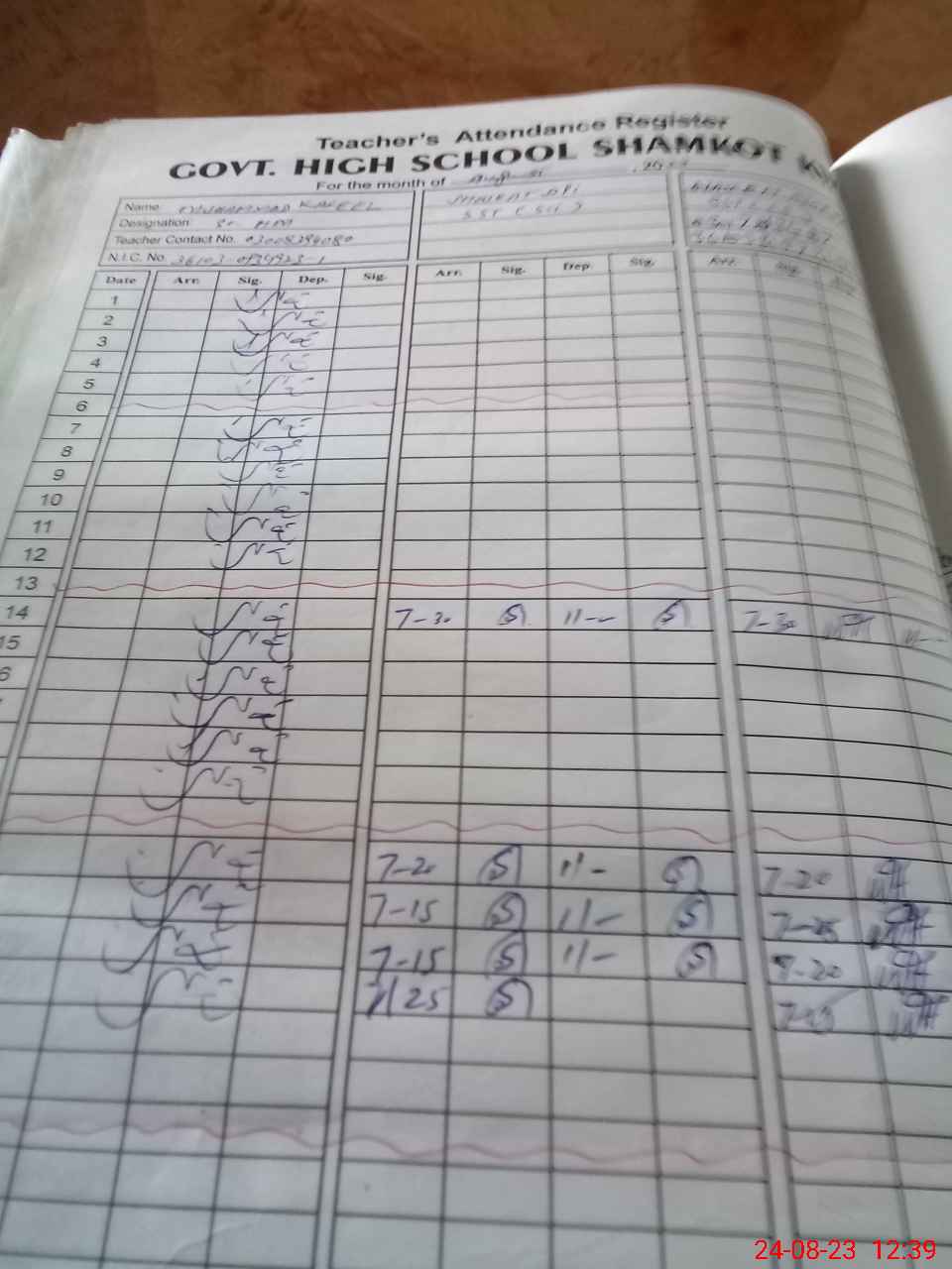 | Name: MKa**** Designation: (School Headmaster's/Headmistress's) Senior Headmaster Phone/Cell Number: 03**** |