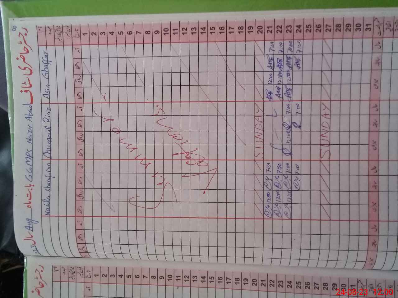 | CNIC | Full Name | Designation | R/C | Absence During Last Calender Month |
