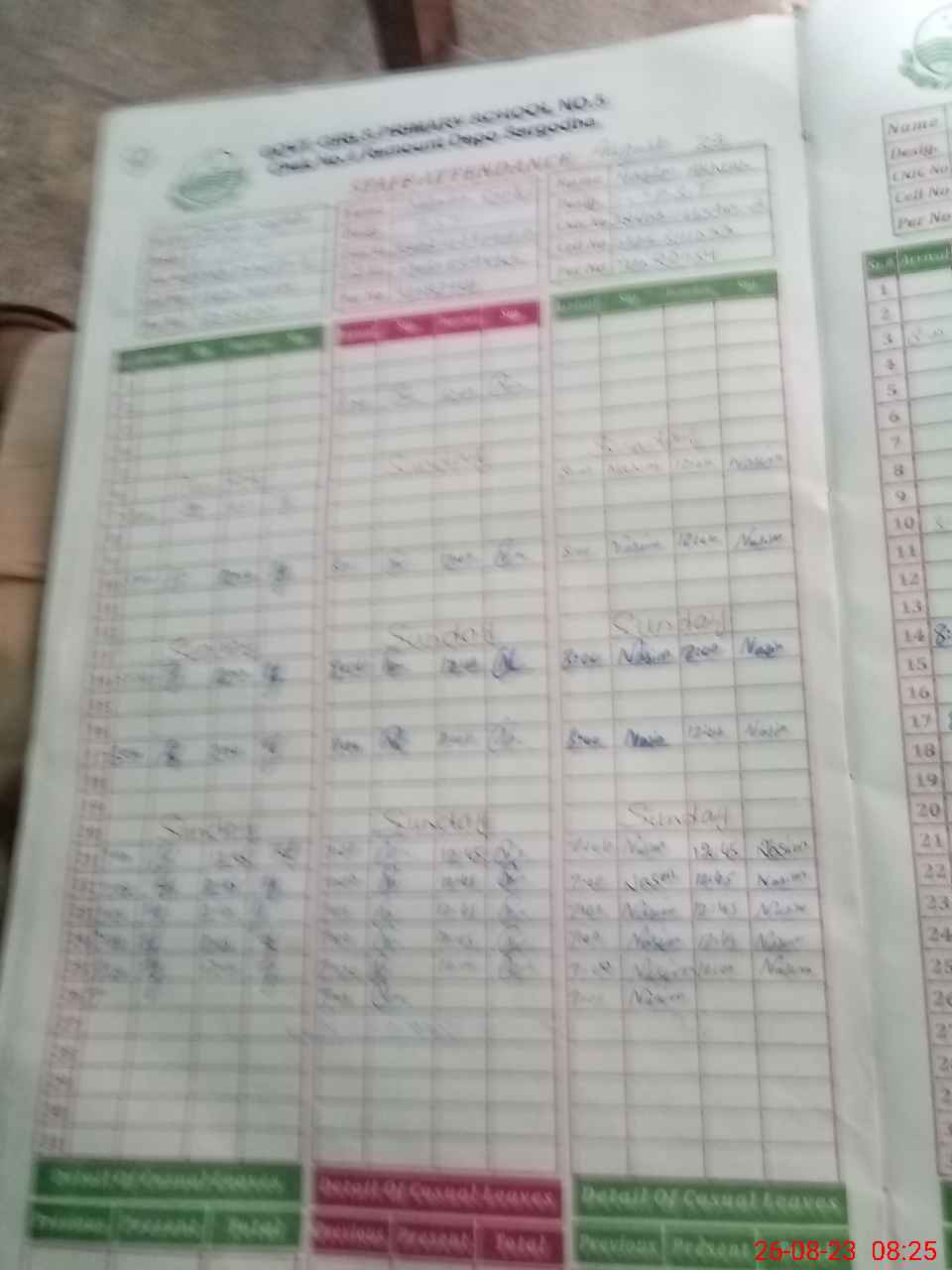 | CNIC | Full Name | Designation | R/C | Absence During Last Calender Month |