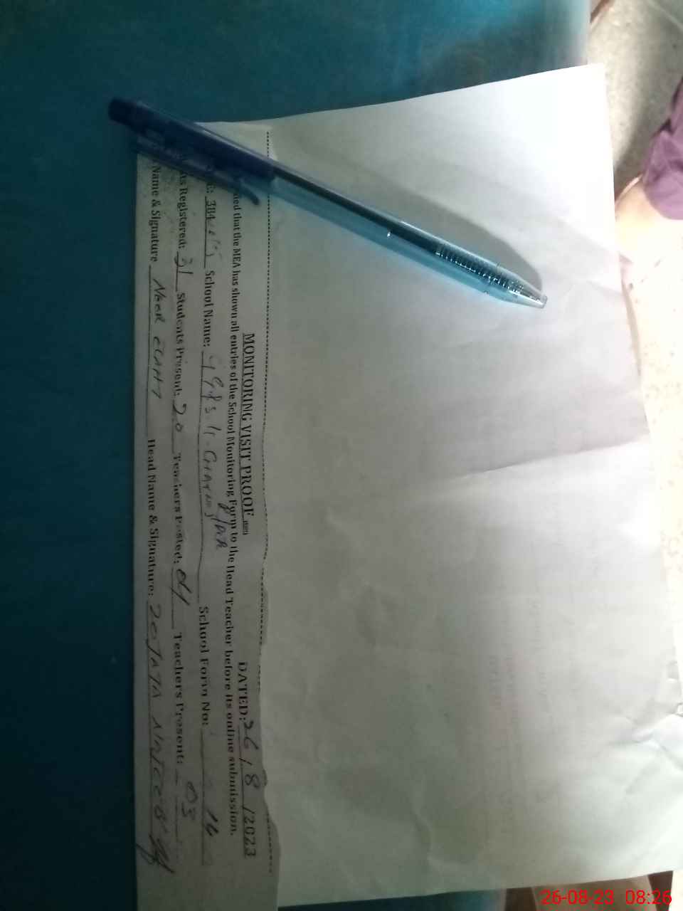 | Attendance Register | Head Teacher | MEA with School | Visit Proof |