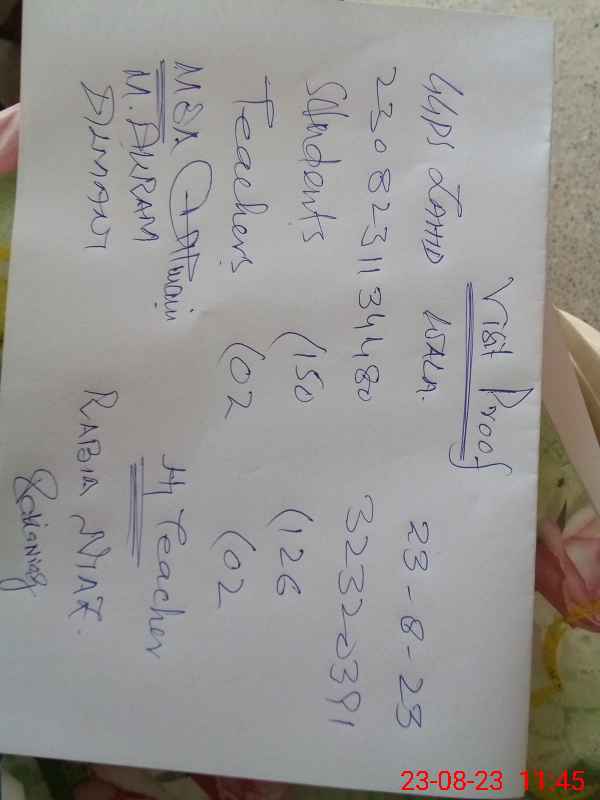 | EMIS Code: 32320391 | Name of School: GGPS ZAFFAR ABAD | |||