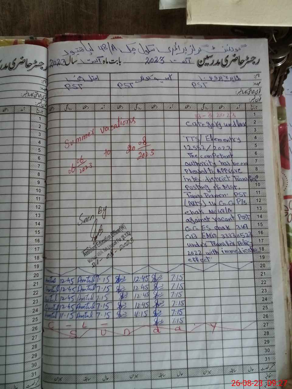 | Name: As**** Ko**** Designation: (School Headmaster's/Headmistress's) PST Phone/Cell Number: 03**** |