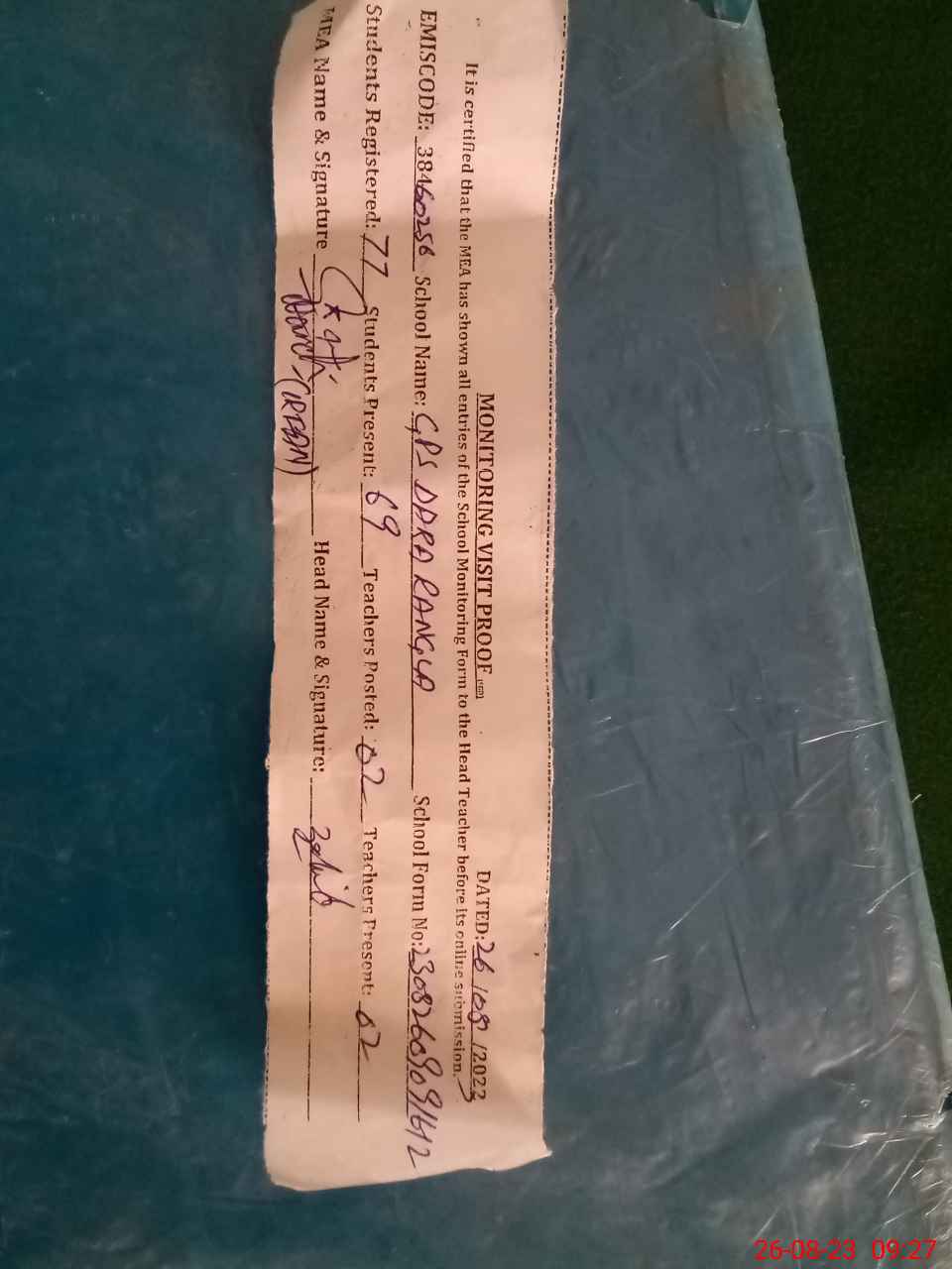 | Attendance Register | Head Teacher | MEA with School | Visit Proof |