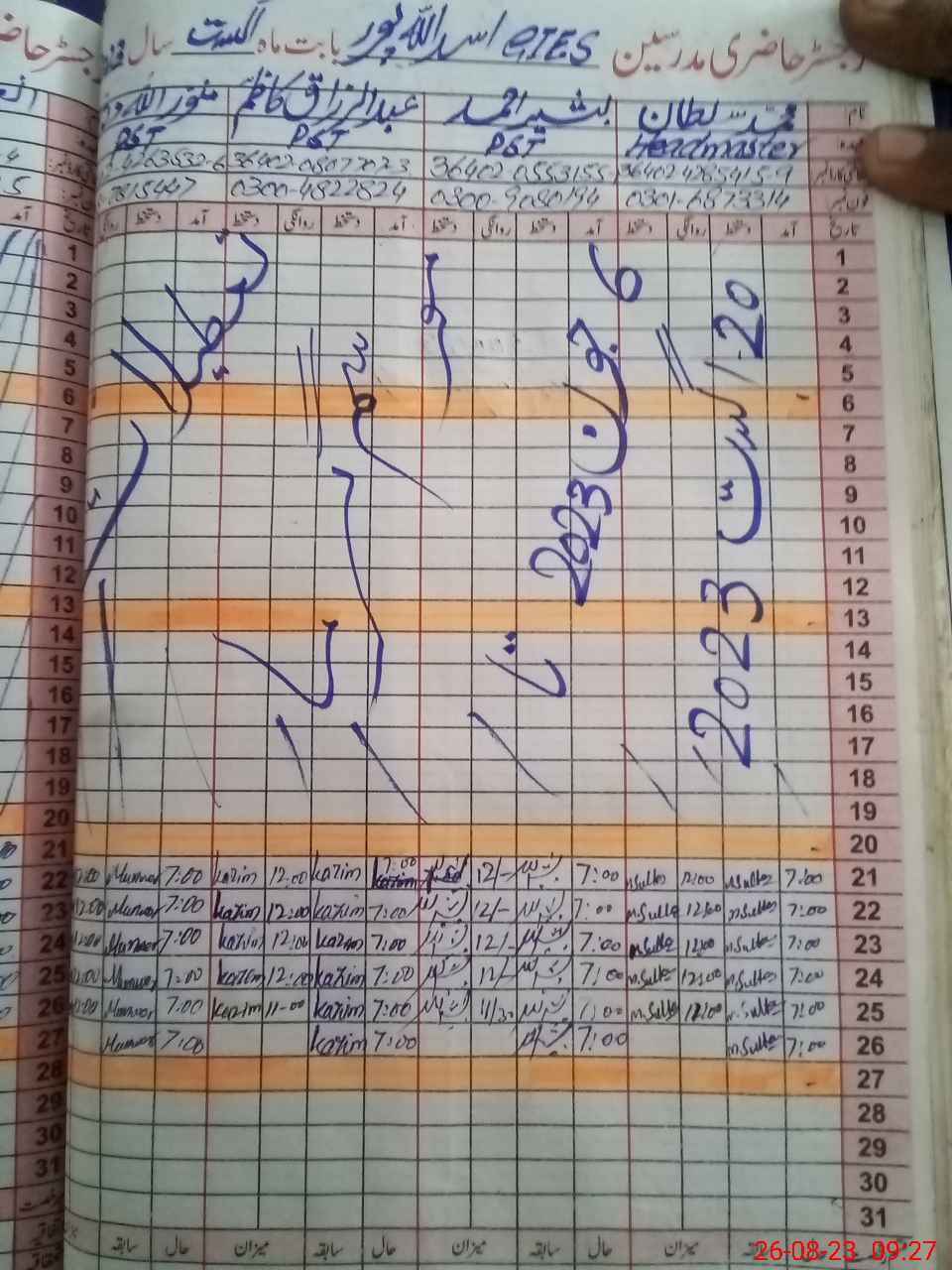| Name: MU**** SU**** Designation: (School Headmaster's/Headmistress's) PST Phone/Cell Number: 03**** |